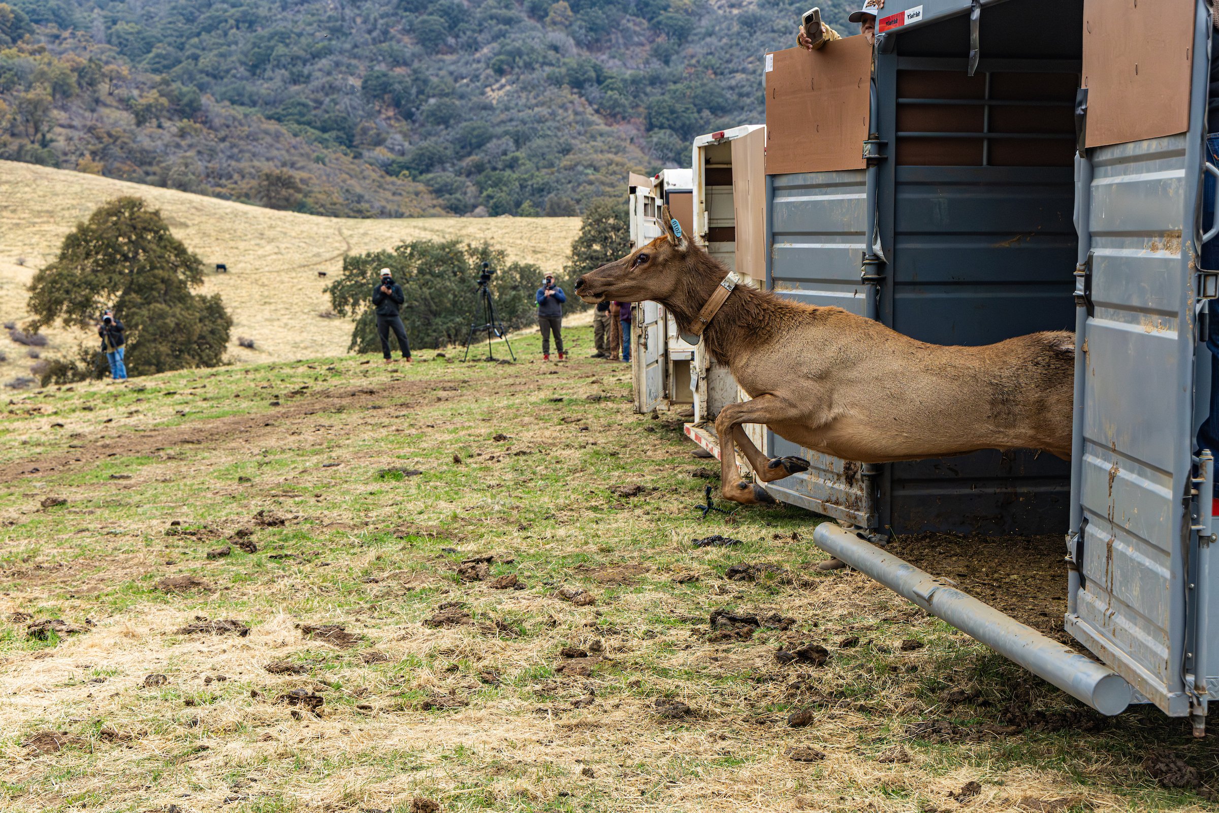Six from Wind Wolves Preserve and nine from Tule Elk State Natural Reserve were translocated to the Tule River Reservation, forming the first members of a new herd in the Sierra foothills. This historic effort was made possible through partnership with the Tule River Tribe, California Department of Fish and Wildlife, and California State Parks.